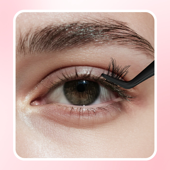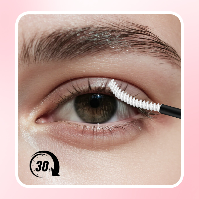 Dab a thin line of glue under lashes, wait 30-35s.